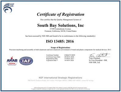 Today South Bay Solutions offers the state of the art in outsourced manufacturing of complex assemblies.
